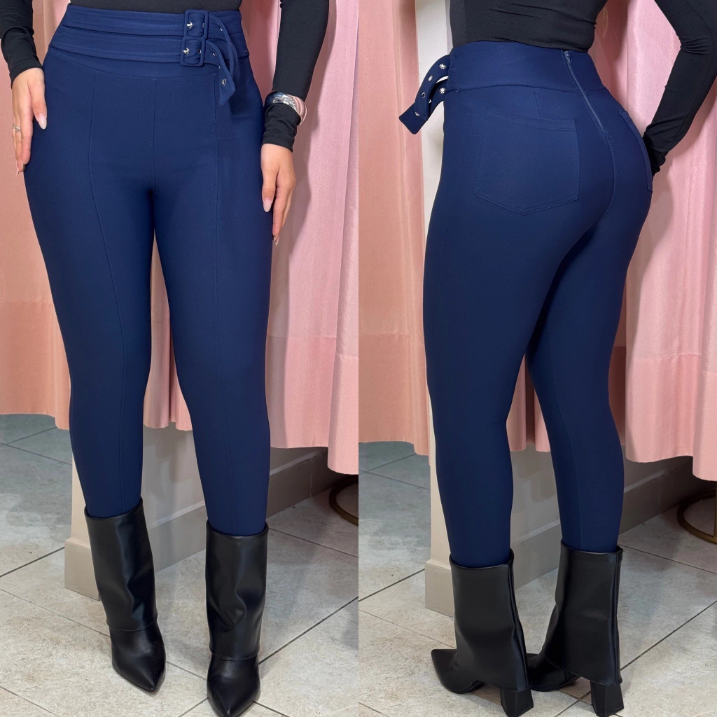 Transforme seu guarda-roupa com a Calça na Montaria power! Feita com um tecido encorpado e rico em elastano, esta peça proporciona um ajuste perfeito que valoriza suas curvas. O cinto duplo embutido e os recortes com prespontos adicionam um toque de elegância e modernidade ao seu look.