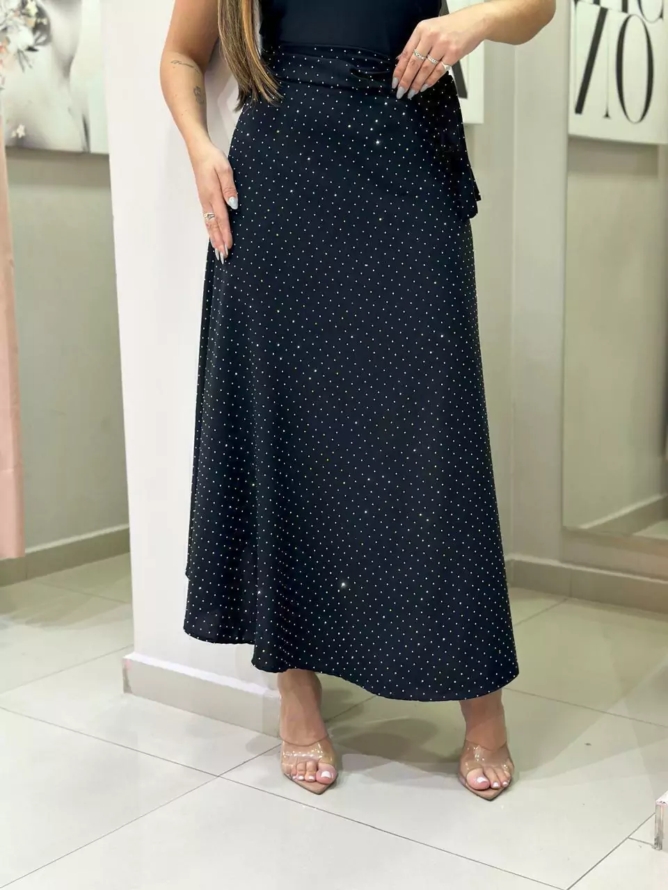 Saia Rita é a peça perfeita para adicionar um toque de brilho ao seu look! Essa saia envelope transpassada em crepe duna, com forro, possui uma aplicação em brilho que vai te fazer brilhar em qualquer ocasião. Disponível nos tamanhos do 36 ao 44, a Saia Rita garante um caimento impecável e muito estilo. Ideal para quem quer arrasar com conforto e elegância. Arrase com a Saia Rita e esteja pronta para qualquer evento!